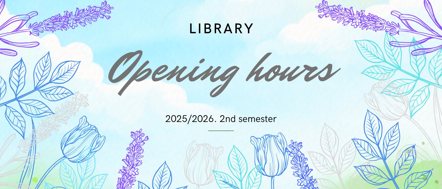 we would like to inform you that the opening hours of our library will be as follows during the 2nd semester: